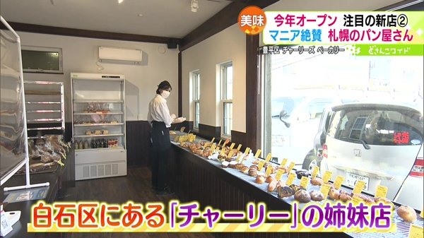 今年3月オープン。人気店「チャーリー」の姉妹店で、毎朝100種類以上のパンが並びます。