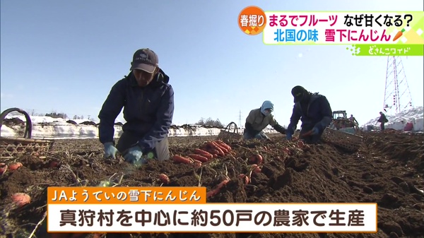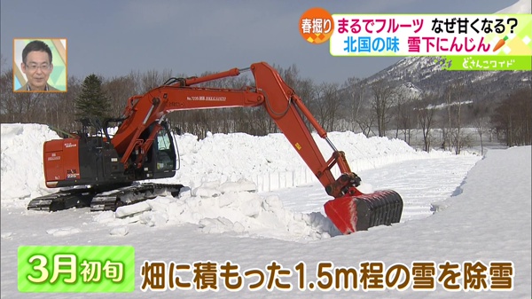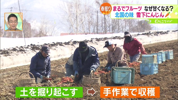 まず、雪下にんじんがどのように収穫されるのかご紹介しました。