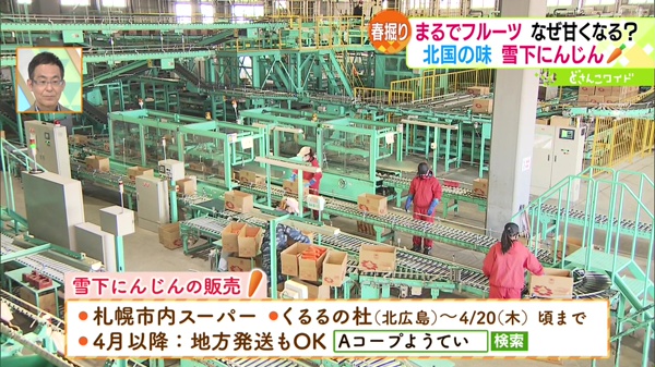 札幌の市場を中心に関東方面にも出荷されますが、札幌市内のスーパーや北広島の“くるるの杜”などで買うことができるほか、来月以降は地方発送を受け付けるので取り寄せることもできます。