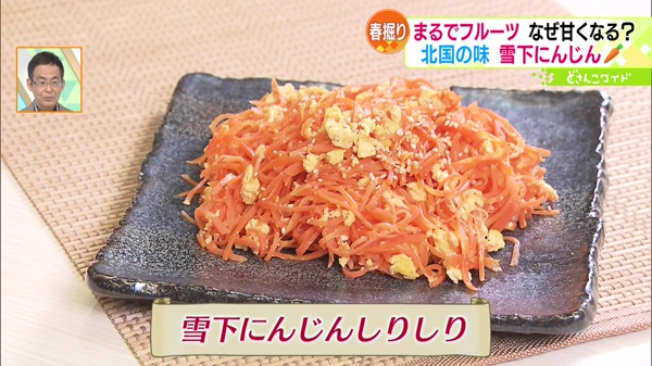生で食べるのはもちろん、「雪下にんじんしりしり」にするのもオススメ。甘みと旨みがたまらない美味しさです。
