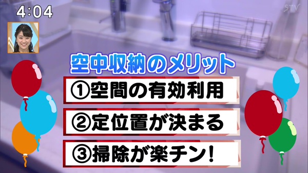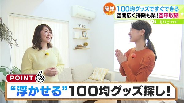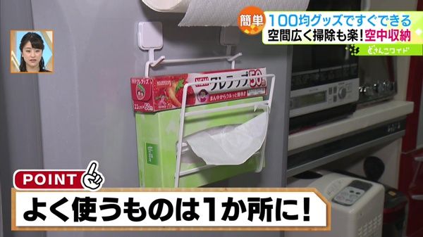 収納のプロが、100均グッズを使ったアイデアを大公開!浮かせて収納する事で掃除の時間を短くできる“空中収納”をご紹介しました。