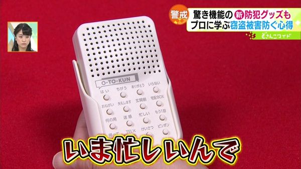 「いらないです」「いま忙しいんで」といったインターホンで使える言葉を、ちょっと荒々しい男性の声で収録されている商品です。女性の一人暮らしの他、高齢者や、こどもの留守番の時などに使われていることが多いそうです。 -
