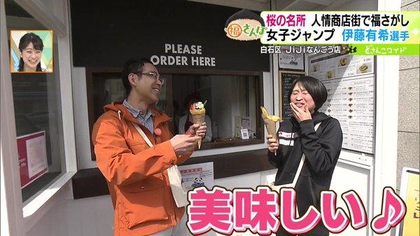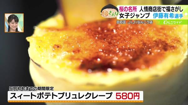 先月オープンしたばかりのクレープ店です。伊藤選手の大好物・サツマイモを使ったクレープを発見しました。