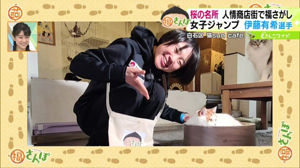 福永アナが散歩を通して、たくさんの“福”を探し回る企画「福さんぽ」。今回は、女子スキージャンプの伊藤有希選手と、100本の桜並木が綺麗な本郷商店街で福さがしです。
