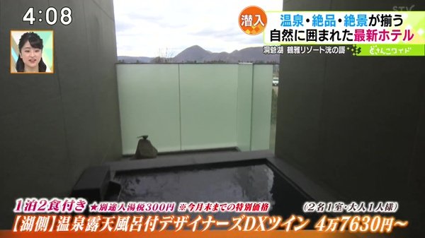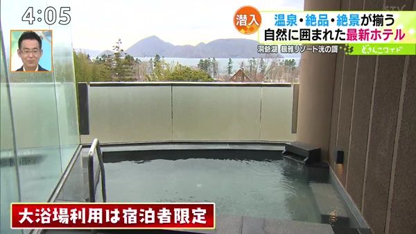 露天風呂からは洞爺湖や有珠山、天気がいいときは羊蹄山まで見渡せます。 -