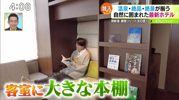 露天風呂がついたこちらのお部屋には、北海道にまつわる書籍が置かれていて、滞在中好きなだけ読書することができます。