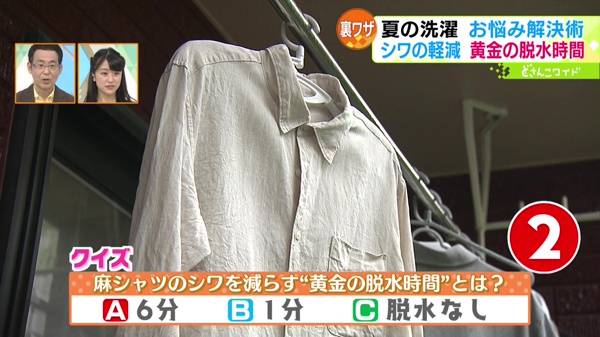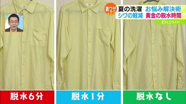 脱水1分のシャツは、シワがまったくないわけではありませんが、他の2つよりシワが少なくなっていました。