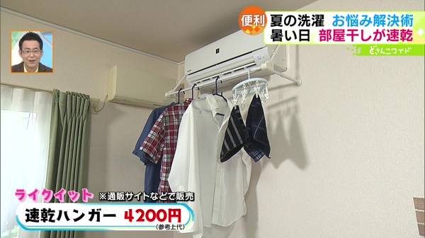 エアコンの上にひっかけて使う物干しです。エアコンの風を直接受けるので速く洗濯物を乾かすことが出来ます。重さは最大5kgまで干すことができ、幅は70〜90cmまで伸ばせるため、様々なエアコンに対応可能です。