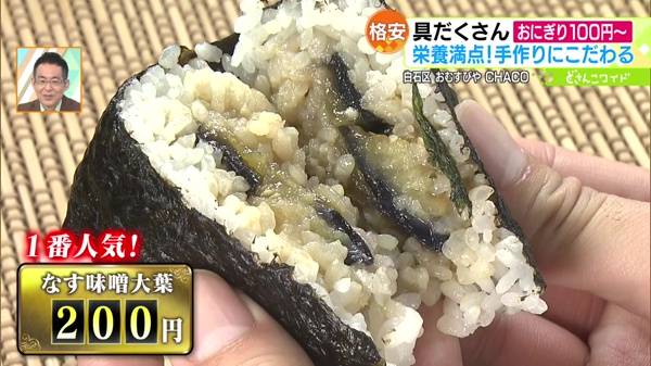●なす味噌大葉 200円お店の一番人気。甘めに味付けされたナスと大葉の爽やかさが絶品です。