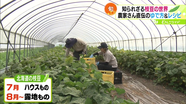 北海道では今、ハウス栽培の枝豆が露地物より先に収穫を迎えています。