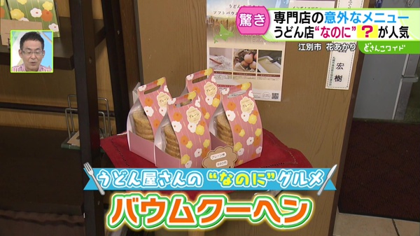 うどん屋さん“なのに”、レジ横にある「バウムクーヘン」も人気です。
