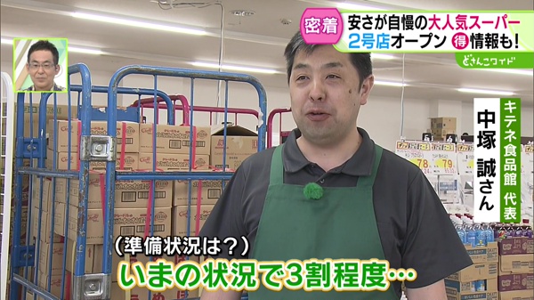 そんな独自の工夫で安さを確立する“キテネ食品館”の2号店オープンに向けて、一般食品担当の中塚さんや吉本水産の嶋村さんなどを中心に準備が進められました。