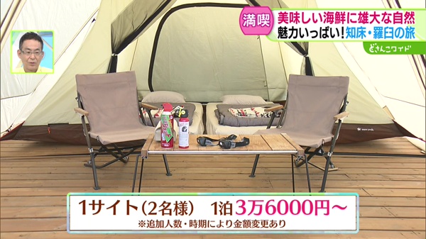 知床・羅臼の自然を生かしたという特別なフィールド。宿泊道具一式、調理器具などのレンタル料、全て込みの料金なので手ぶらで楽しめます。