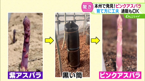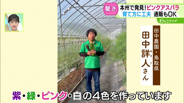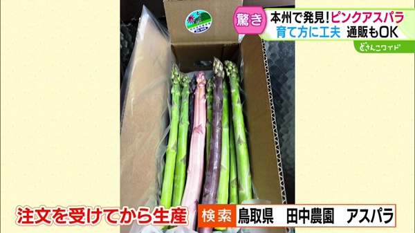 “ピンク色のアスパラガス”は北海道ではなく、本州の福島県や鳥取県などで作られています。