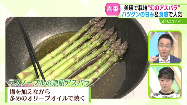 皮をむく必要がないほど根元までやわらかいラスノーブルはどんな料理にもあいますが、本山さんの一番のオススメは「無限アスパラ」です。