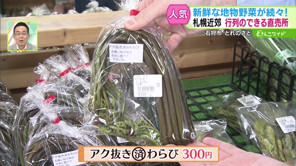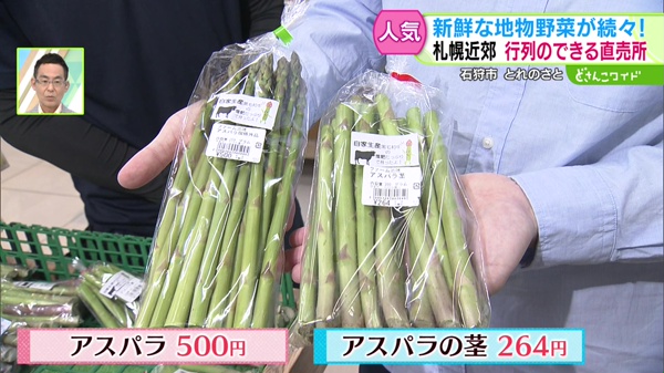 アスパラや山菜が美味しい季節です。今回は石狩市にある野菜直売所から、新鮮な野菜等をご紹介しました。