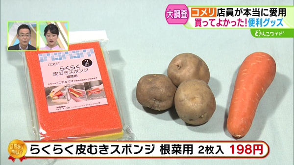 軽い力でこするだけで野菜の皮が剥けるスポンジです。