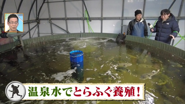 ミネラル分が豊富な天然温泉を利用することで、とらふぐの育ちが少し早いそうです。