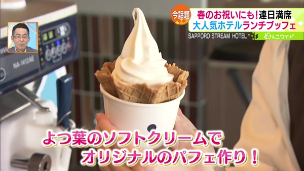 フルーツやデザートも充実しています。中でも人気なのが、よつ葉のソフトクリームが盛り放題。トッピングなどを自由に盛り付けて、オリジナルのパフェも作れます。