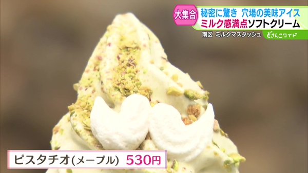 こだわりのソフトクリームは、新冠町の放牧牛の生乳を使用しています。最高級のグリーンピスタチオを使用したソフトクリームも人気です。