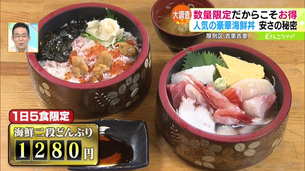 ●海鮮二段どんぶり 1280円 ※1日5食限定※9月2日(土)〜10月末まで5食→10食
