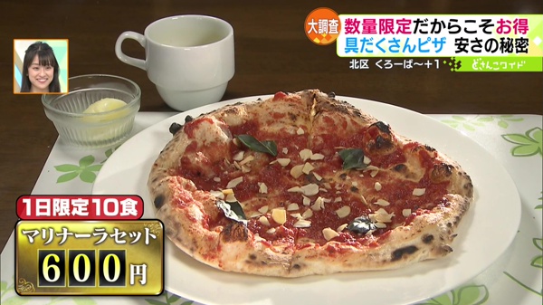 もうひとつお得な数量限定グルメをご紹介しました。自家栽培したバジルとガーリックのきいたシンプルで奥深いピザ「マリナーラ」のセットです。