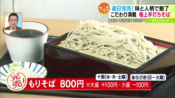 こちらの完売グルメは、店の看板商品「もりそば」。そばののどごしを一番感じられるということで人気です。