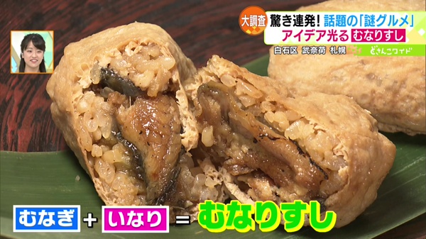 「むなりすし」とはウナギの古称“むなぎ”と“いなり寿司”を組み合わせた、お店独自のネーミング。中身に酢飯だけじゃなく、求肥と国産のウナギが入っています。