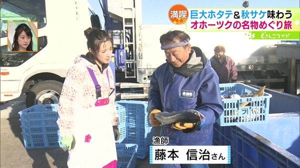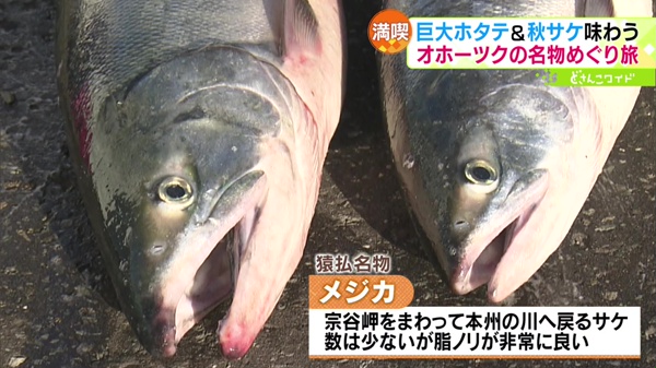 港では今月から、秋サケ漁が始まっていました。港に着くとすぐにオスとメスで選別します。ここで漁師の藤本信治さんが、“メジカ”と呼ばれる高級サケを教えてくれました。通常のサケよりも目の位置が鼻に近いのが特徴で、脂のりが抜群です。