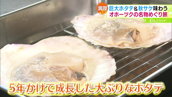 一般的に、養殖のホタテは2〜3年で水揚げしますが、猿払の“天然ホタテ”は5年かけて育ったものを獲っています。身が大きくて食べ応え十分です。