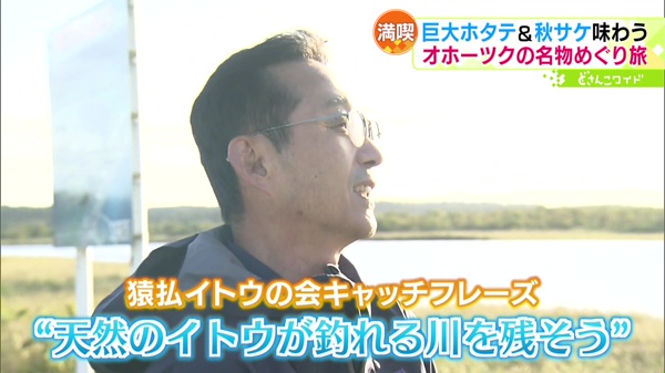 続いて向かったのは、自然豊かな猿払川。幻の魚といわれるイトウが生息しています。“猿払イトウの会”の会長・小山内浩一さんにお話を伺いました。