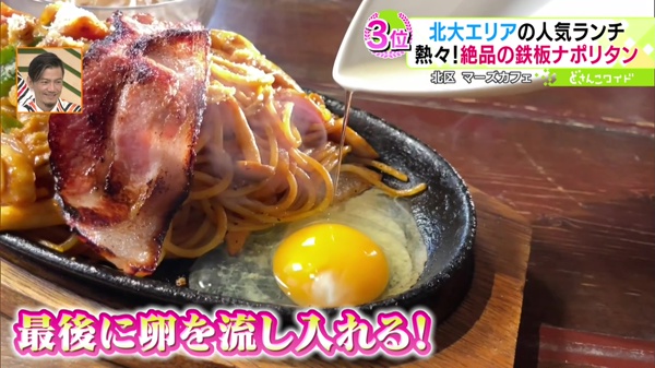 調査に協力してくれた方オススメの「鉄板ナポリタン」をご紹介しました。お客さん自ら、卵を鉄板に流しいれるという演出もあります。