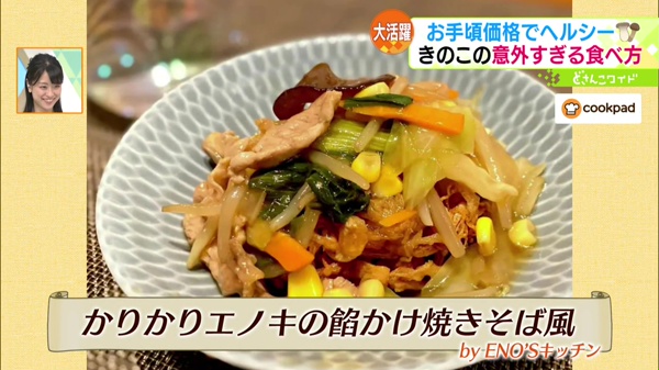 クックパッドアンバサダー・ENO'Sキッチンさんに「かりかりエノキの餡かけ焼きそば風」を教えていただきました。
