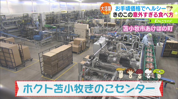 可愛いキャラクターでもおなじみ!北海道で売られているホクトの商品のほとんどは、“苫小牧きのこセンター”で作られています。
