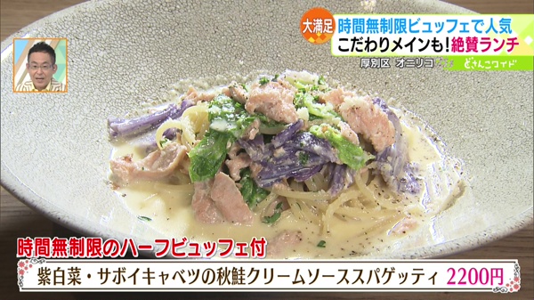 ●紫白菜・サボイキャベツの秋鮭クリームソーススパゲッティ 2200円
