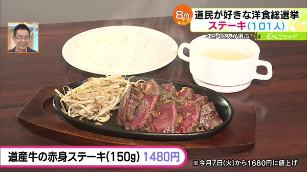 アンケートの中でも、人気だったお店をご紹介しました。お店の自慢はステーキに使われている「道産牛の内モモ肉」。脂身が少ない赤身で、あっさりとした味わいが人気の希少部位です。
