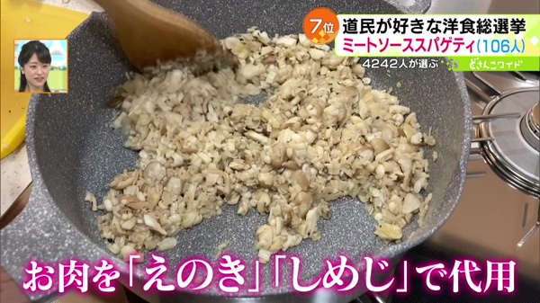 皆さんからのご意見を参考に、お肉の代わりにみじん切りにした“えのき”と“しめじ”を使った「きのこソース」を作ってみました。