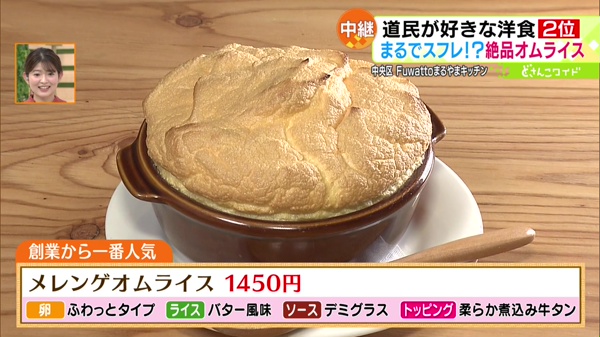 お店の一番人気は「メレンゲオムライス」。フワフワ食感がたまらないメレンゲを使用しています。