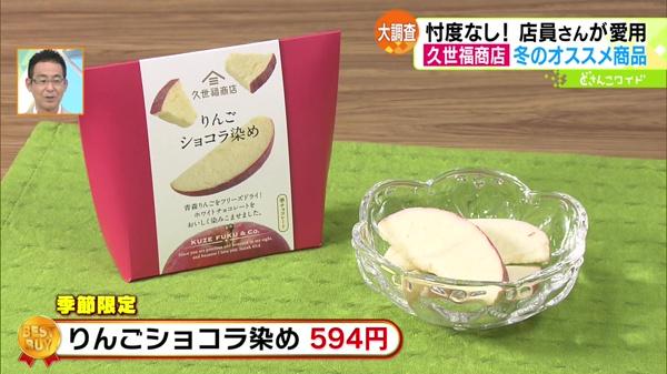 ●りんごショコラ染め 594円 ※季節限定フリーズドライしたリンゴにチョコレートを染み込ませた一品。見た目はりんご、食べたらチョコの新食感スイーツです。
