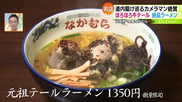 ●元祖テールラーメン 1350円(数量限定)器が直径25cm!4時間以上煮込んだ大きなテールがのった一杯です。良質なテールのみを使っているため数量限定となっています。
