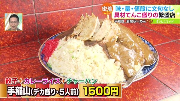 ●手稲山(デカ盛り・5人前) 1500円 ※お残し&シェアは罰金500円利益なしの名物メニューです。総重量約3.6kgのお米は約7.5合使われています。