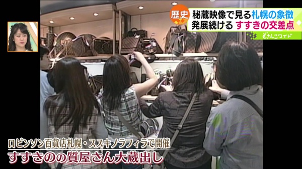「すすきのの質屋さん大蔵出し」が一大ブームに。当時質屋が密集していたことで、質流れ品や高級ブランド品が飛ぶように売れた時代でした。昔は100軒以上もあったすすきのの質屋も今では3分の1に減ってしまいました。
