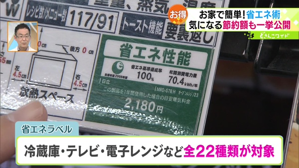家電を買い替える時は、「省エネラベル」をチェック!全部で22種類の家電製品が、省エネラベルの対象です。