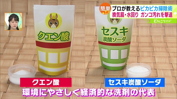 プロのおすすめはセスキ炭酸ソーダとクエン酸の2つだけ。どちらも白い粉状で、身体にも環境にも優しく、100均でも購入できる経済的な洗剤です。