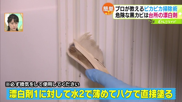 現役看護師でもある梅田さんが懸念するのは黒カビです。黒カビはアトピーやアレルギーを悪化させる要因にもなるそうなので、見つけたらすぐ撃退しましょう。台所用の漂白剤を使用して撃退します。