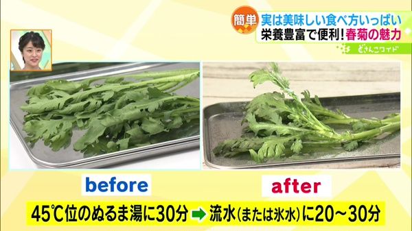 しなった春菊を復活させる方法も教えていただきました。※詳しくは動画本編をご覧ください。