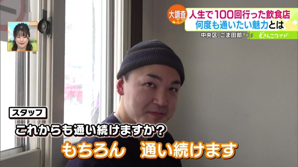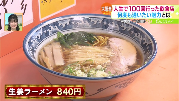 街行く方たちに「人生で100回以上行った飲食店はありますか?」と聞き、そのお店を密着取材する企画「100回行っても飽きない名店」。今回は、“生姜ラーメン”が看板メニューだというラーメン店に密着しました。