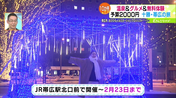 最後は今年で22回目になるおびひろイルミネーションを楽しみました。JR帯広駅前北口で2月23日(金)まで開催予定となっています。