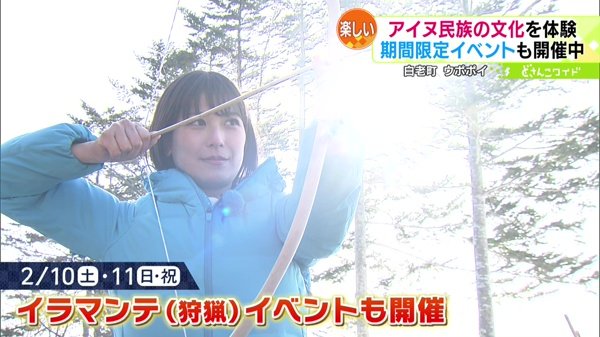 アイヌ民族に伝わる弓矢を使った遊びや、2月11日(土)には1日2回(11:00〜、14:00〜)、サケの皮を使ったキーホルダー作りも体験できます。