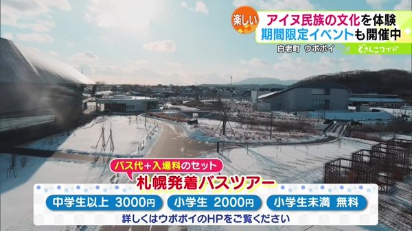 2月11日(日・祝)までの期間限定で、ウポポイの入場料がセットになったお得なバスツアーも実施しています。詳しくはウポポイ公式サイトをご覧ください。